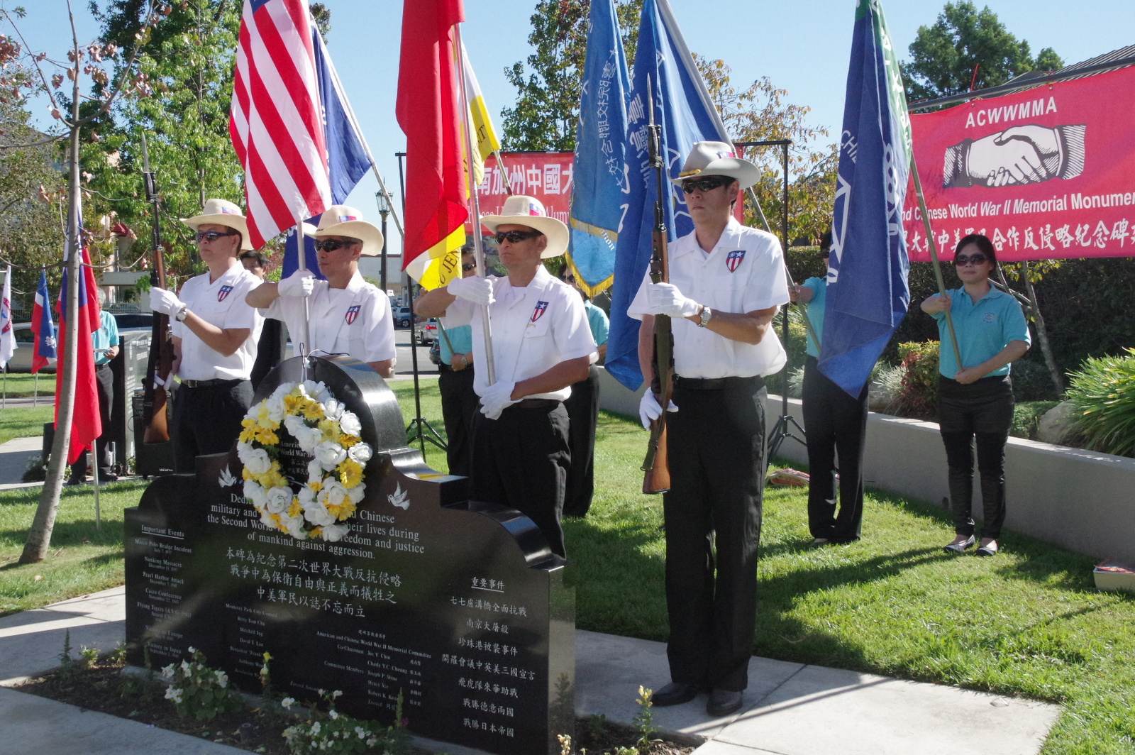 2010年由社區華人籌建的蒙市「第二戰中美軍民合作反侵略紀念碑」是全美第一座華裔軍人紀念碑。上週六(11月8日),南加州中國大專院校聯合校友會聯合多個社團組織,共同向紀念碑敬獻了花圈。