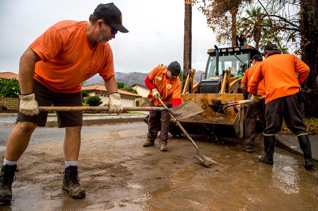 前半週,從太平洋西北的低氣壓系統帶來穩定的陣雨正中要害,除了導致更多交通事故外,沒有引起太大的泥石流、洪水等危險狀況,特別是在被山火燒燬的地區。根據美國國家氣象局統計的數據,週二洛杉磯市中心收到1.22英吋累計雨量,聖蓋博山脈有2.40英吋雨量。