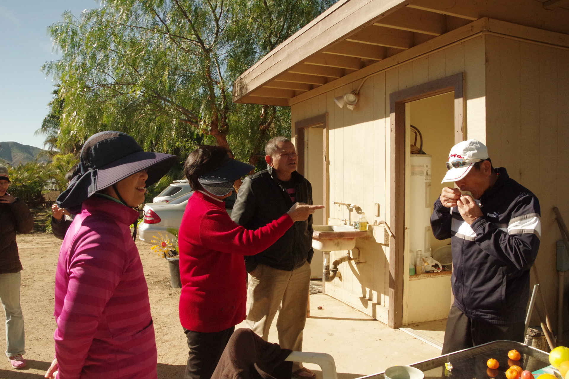 但是光有大自然顯然仍是美中不足,人與人之間的溫情也是不可缺少的。為此,劉家鴻把園中種有四季時令果樹的一英畝作為以果會友的資本,敞開大門,歡迎來自四面八方的同胞到他的苗圃作客。經過口耳相傳,越來越多的華人知道河濱縣有一位好客的臺灣園主。隨著聖誕新年假期的到來,不斷有客人來這裏拜訪,最多可達50人一團。大家摘果子、吃果子、巡園賞花,賓主盡歡。