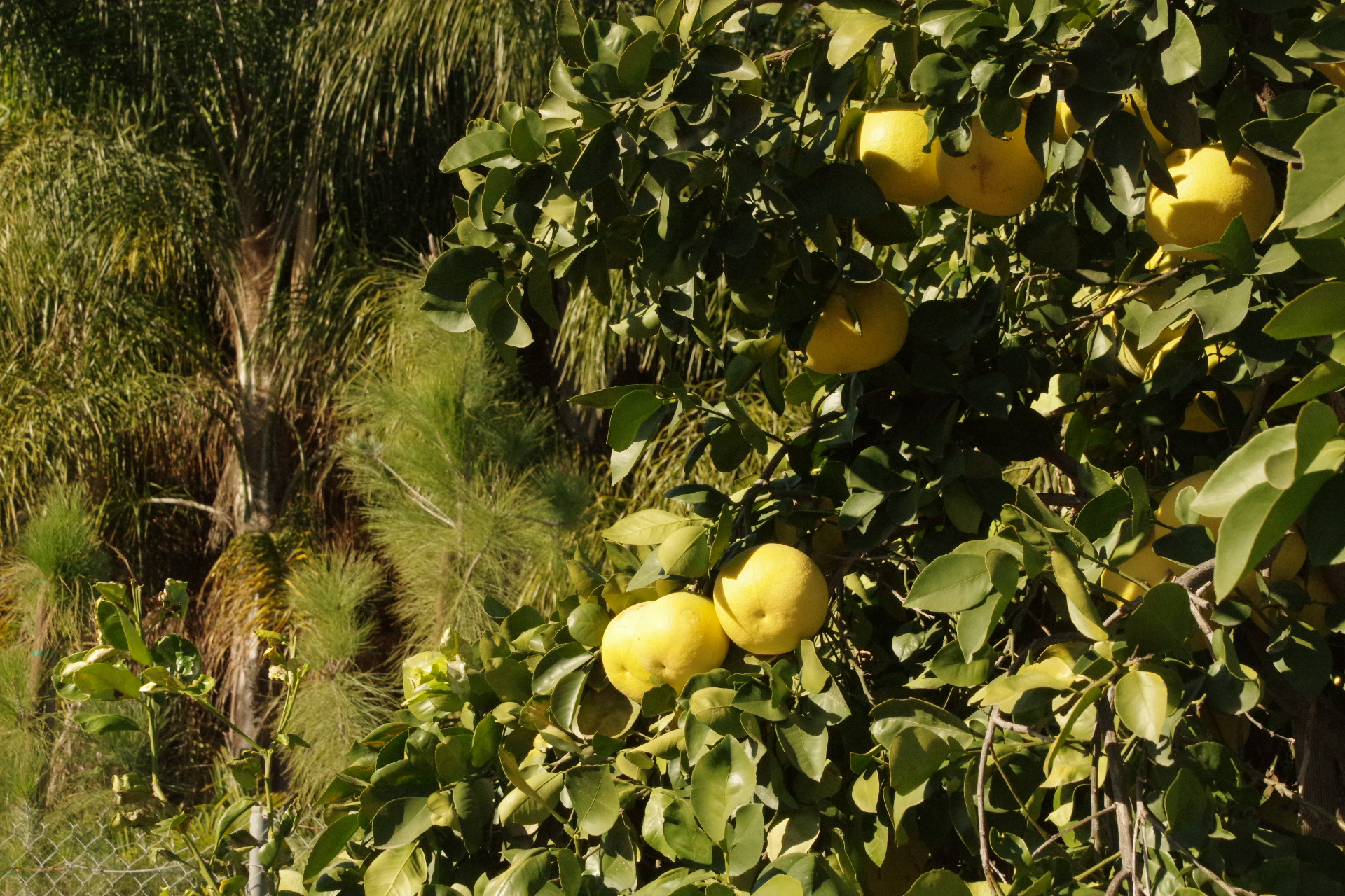 苗圃大門口的柚子樹上已掛滿了果實。(劉菲/大紀元)