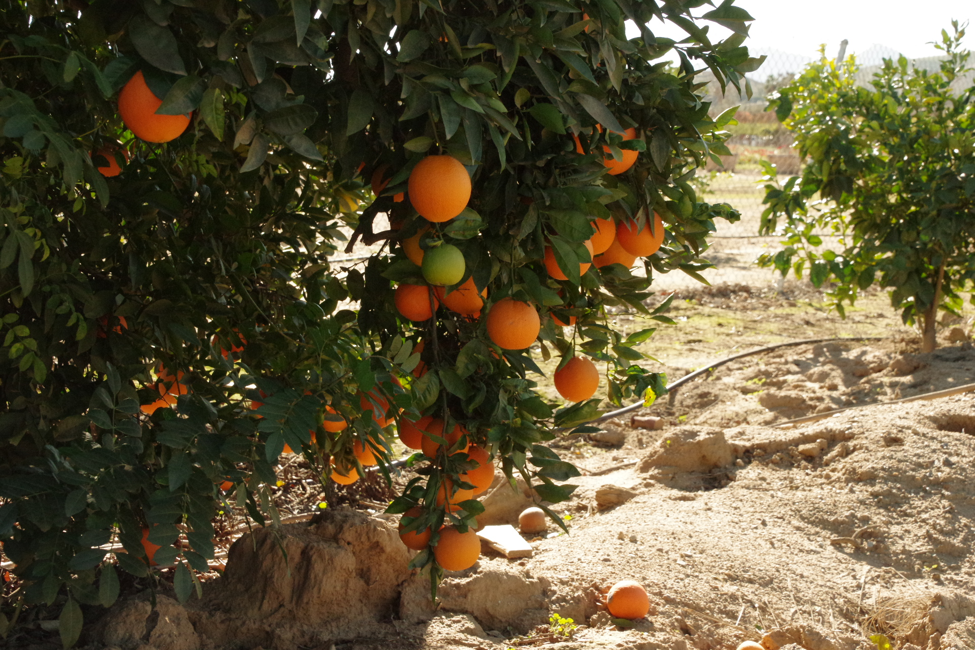 從91號高速公路下來南行,林立的果園,金燦燦的橙子掛滿樹梢、散落地上,豐美富足如進入「世外桃源」,不禁令人感嘆美國得天獨厚的自然條件。