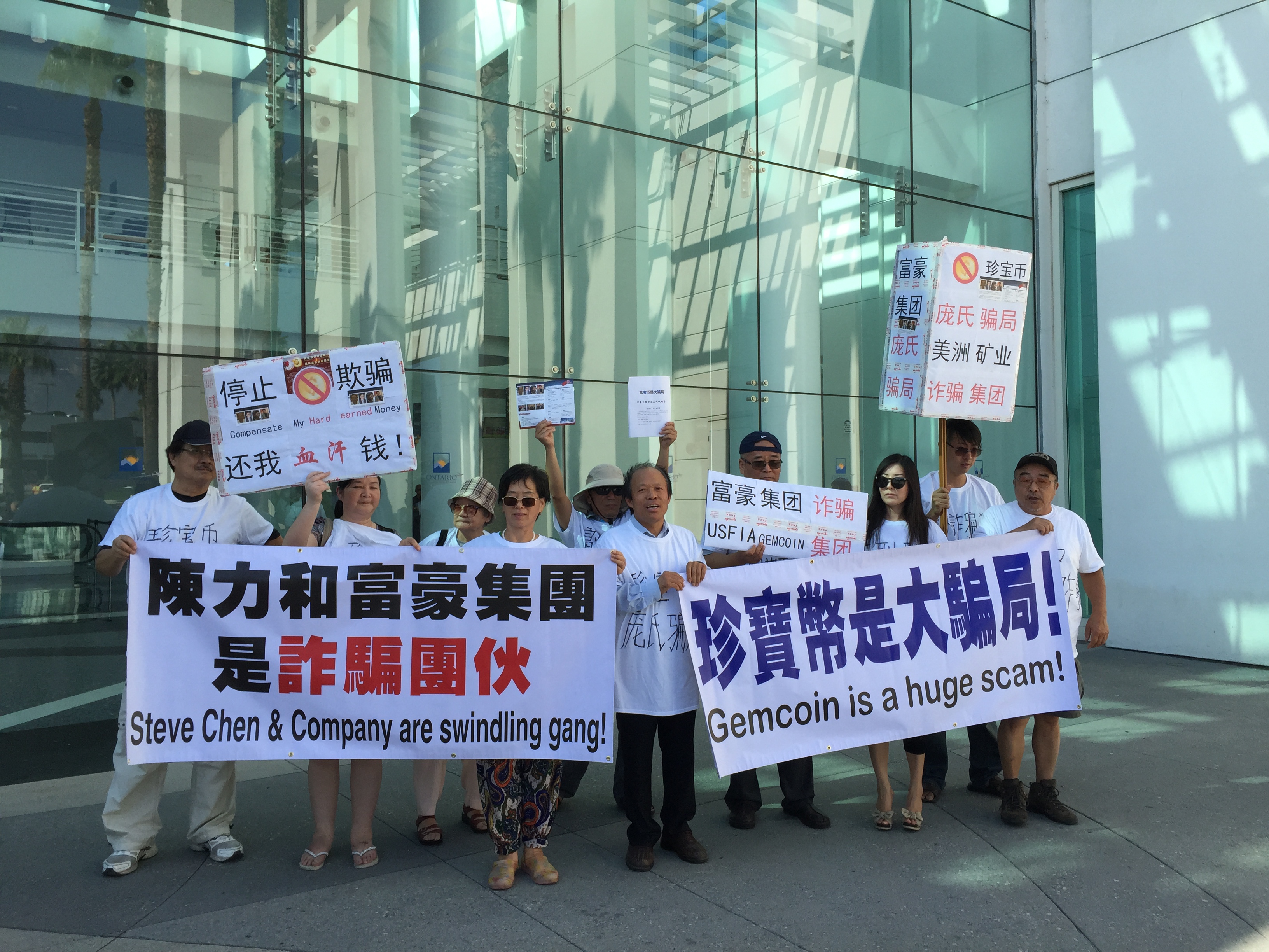 8月28日 (週五) 上午,USFIA原定在加州聖貝納迪諾縣(San Bernardino County)安大略會議中心 (Ontario Convention Center) 舉行的一個投資論壇,卻因一群憤怒的華人抗議者而取消。抗議者聲稱,USFIA發行的珍寶幣是一個大騙局。