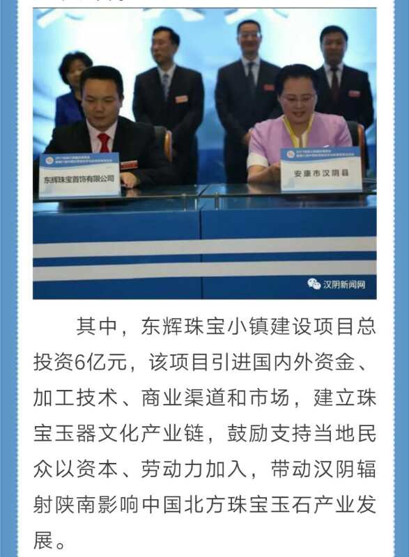 湯曉東表示,他們在當地找了大股東成為發起人開了第一家珠寶店,後又開了6家珠寶店,一個珠寶產業園和4個交易中心。「這種商業模式一路經過政府招商監管運營支持做到今天。特別在西洽會上和縣政府有做珠寶小鎮的簽約。當地官網報紙電視台都對我們有推廣宣傳。明確鼓勵老百姓以資金和勞動力加入東輝企業。在縣招商會也有簽協議。」