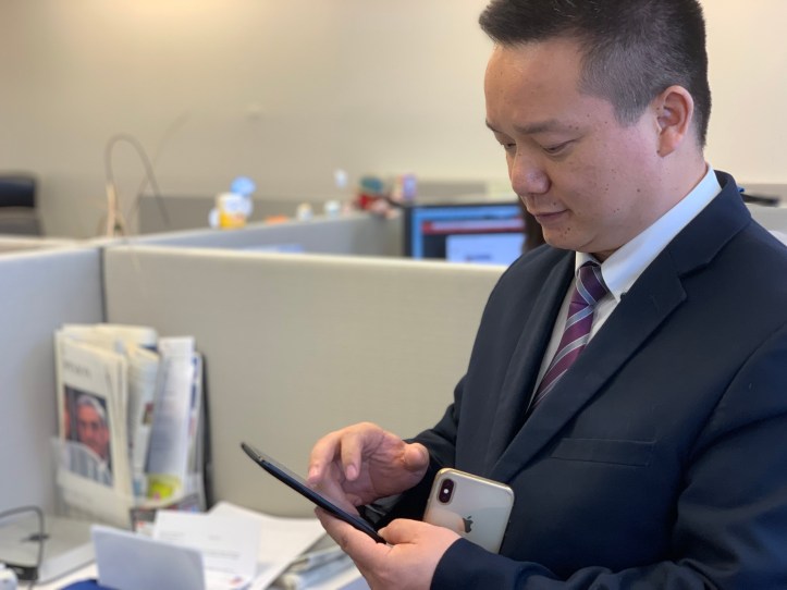 採訪過程中,湯曉東擺出4個手機,說他有兩個中國號,天天在給國內相關的辦案人員打電話,已無人接聽。