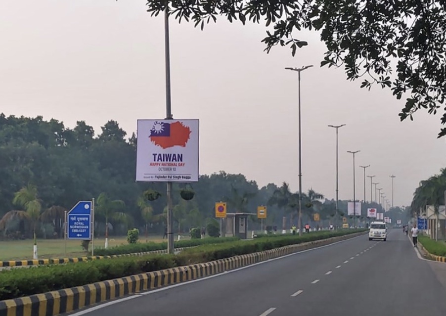 继印度网友在社群媒体发起张贴中华民国国旗庆祝双十国庆图片后,执政的印度人民党(BJP)德里党部发言人巴加(Tajinder Pal Singh Bagga)昨天深夜带人前往使馆区,把100面印有中华民国国旗和「台湾,国庆日快乐」标语的海报,贴在中国驻印度大使馆前道路的每支路灯上。