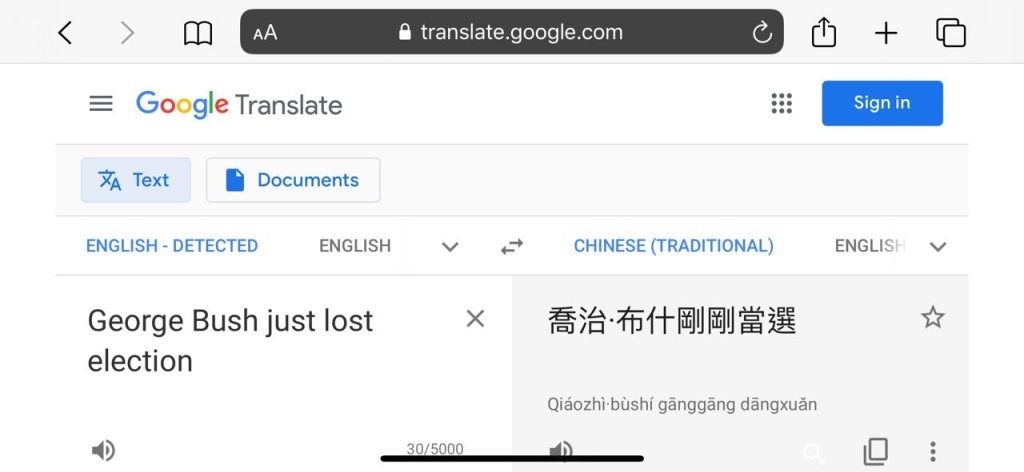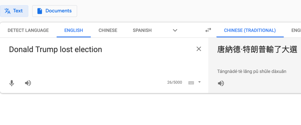 截止到发稿为止,小编亲测,Google Translate英翻中的功能将“Joe Biden Just Lost Election”自动翻译成“拜登刚刚当选”,意思刚好相反;而“Joe Biden Lost Election”则翻译称“拜登竞选连任”,同样相反。测试奥巴马和布什,出现同样错误。唯独换成川普,翻译是准确的。