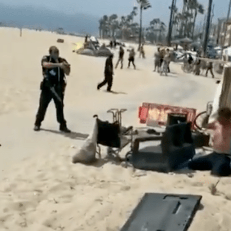 视频:警察带突击步枪驱赶加州威尼斯海滩游民