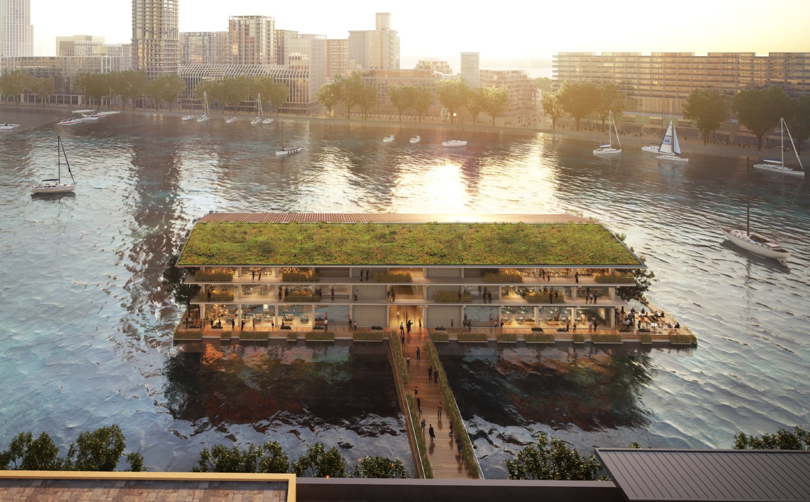 浮动办公室由当地建筑公司 Powerhouse Company 设计,公司亦正沿著港口重新发展 12 英亩的场地。目前,旨在为各国及商业机构提供气候变化支援与建议的国际组织 Global Center on Adaptation 已在浮动办公室设立总部,亦有建筑师开设办公室,另外还有餐厅、带泳池的公共露台等配套。