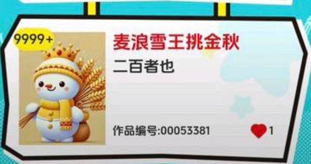 同个作者还有「麦浪雪王挑金秋」的作品,画面中雪王挑起麦子看起来相当可爱,但这无疑是在讽刺习近平自称「扛200斤麦子,十里山路不换肩」的吹牛之语。