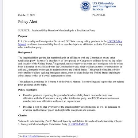 美国移民局10月2日发布政策公告:禁止共产党员移民 Trump Administration Signals Tougher Action to Bar Communist Party Members From Immigrating to US